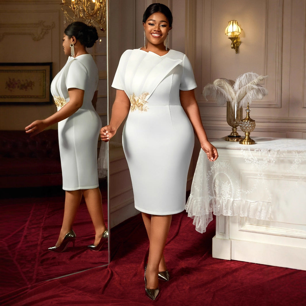 Embroidered Short Sleeve Banquet Party High Waist Dress
