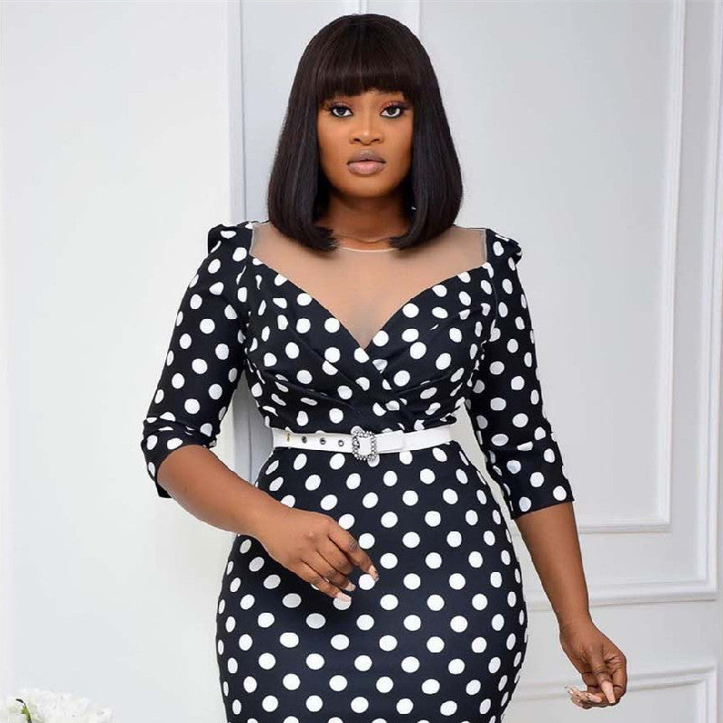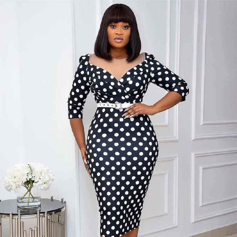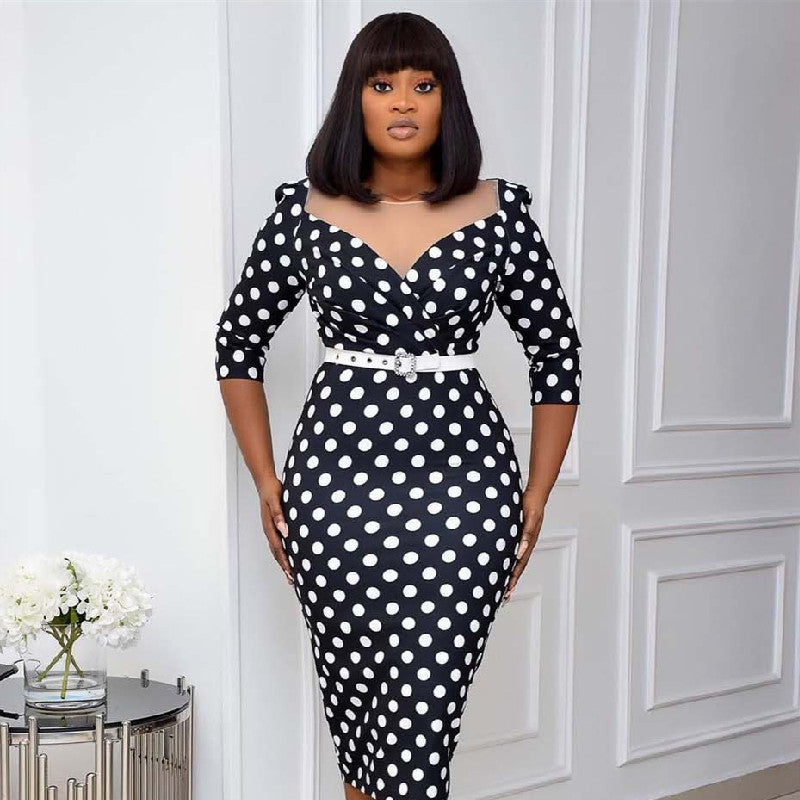 Female Printed Sexy Slim Polka Dot Jumpsuit Midi Dress