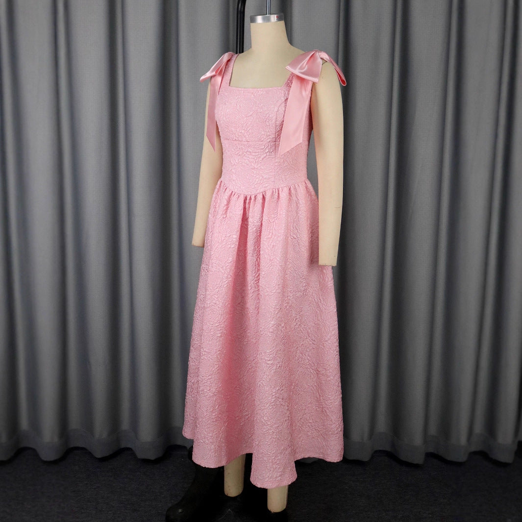 Female Solid Color Sleeveless Elegant Bow Bandage Dress