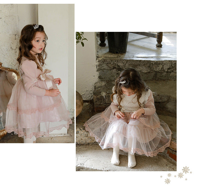 Color: winter multi-layer pink dress, winter multi-layer black dress