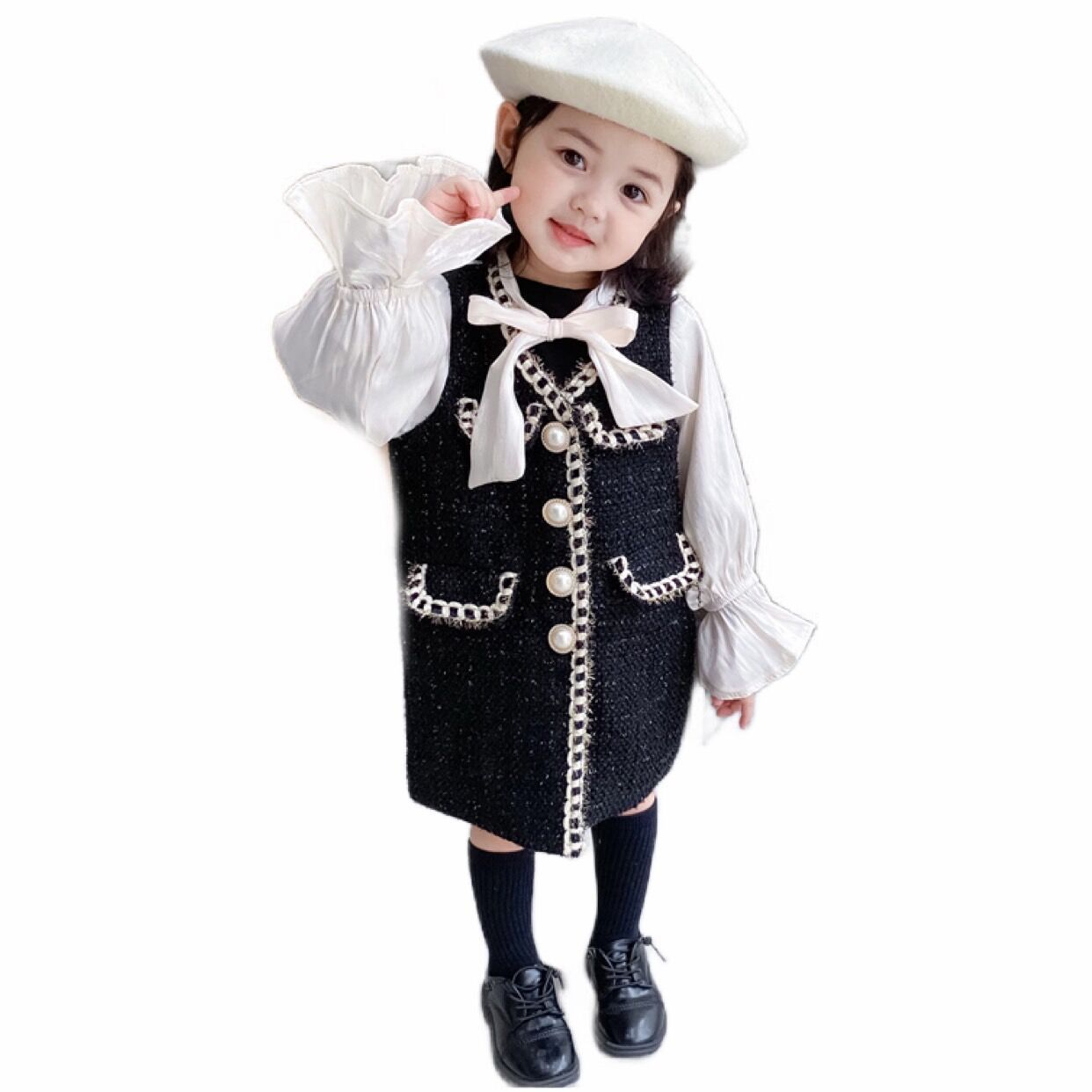Girls dress long sleeve letter ball sweater