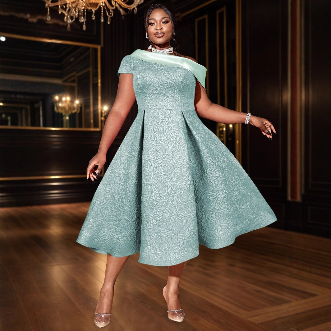 Jacquard Party Banquet Diagonal Collar Large Skirt A- Line Dress