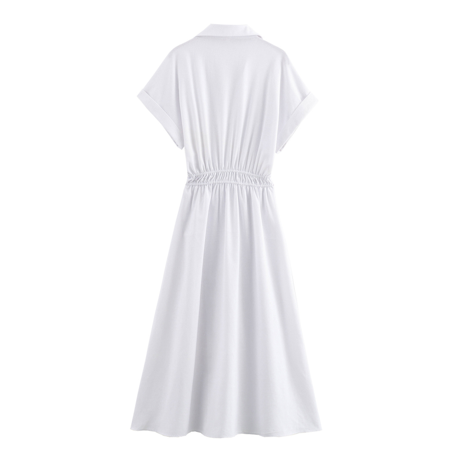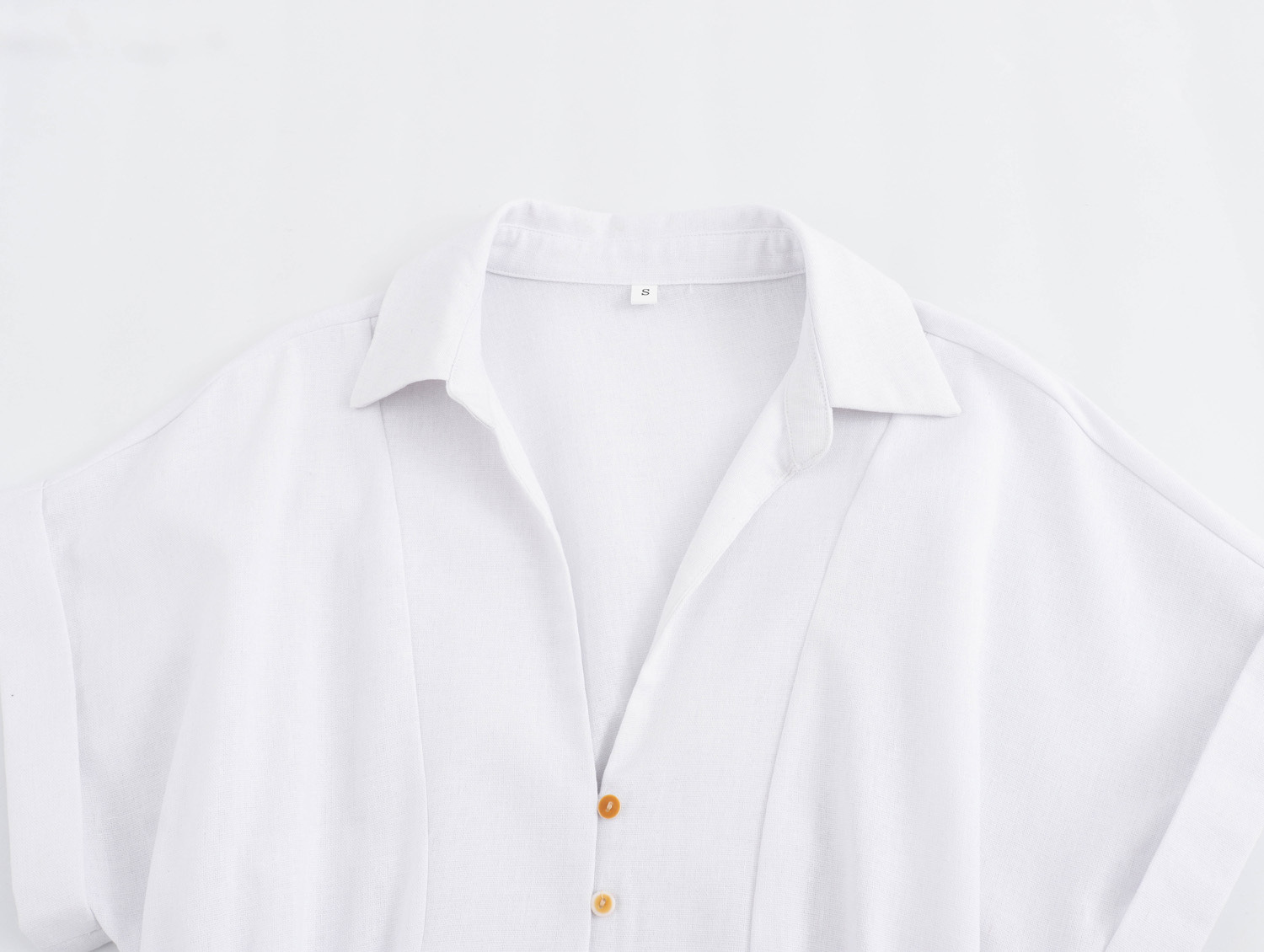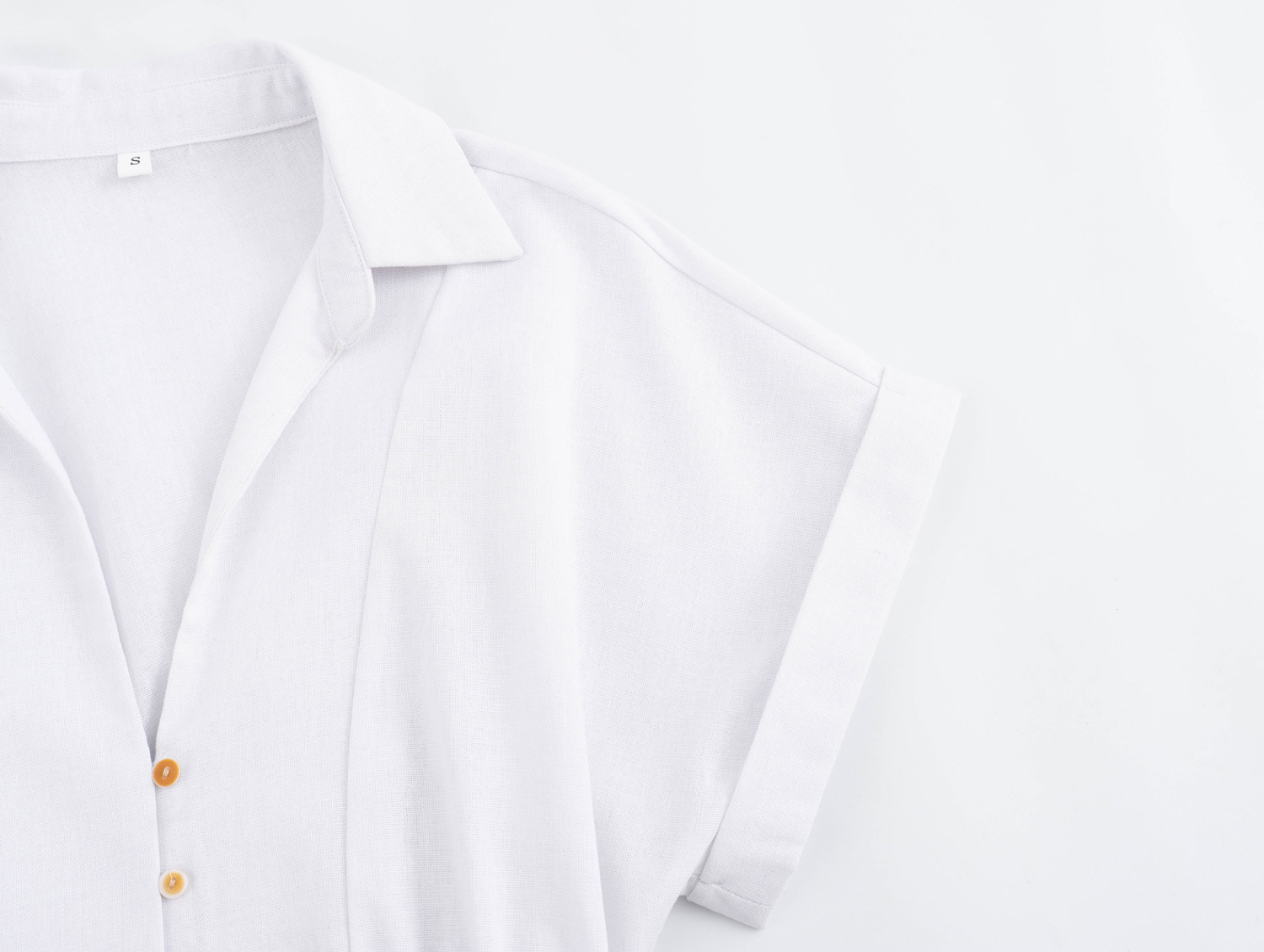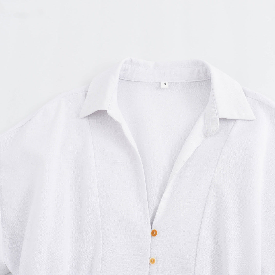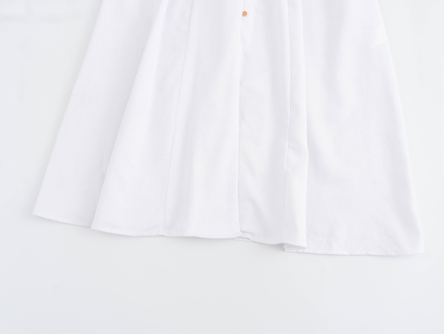 Linen Blended Midi Skirt Shirt Style Loose Dress Women