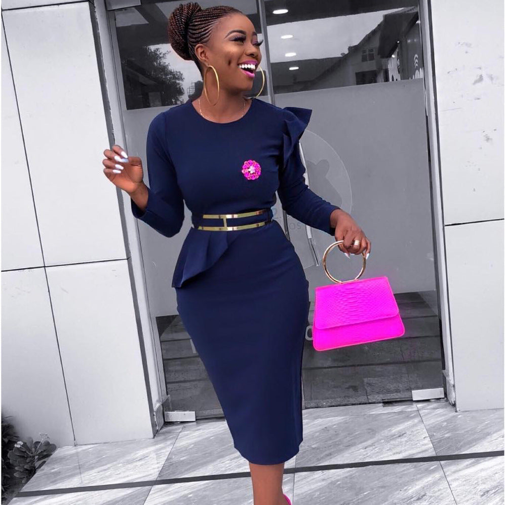 Plus Size Women's Solid Color Sexy OL Sheath Pencil Skirt African Dress