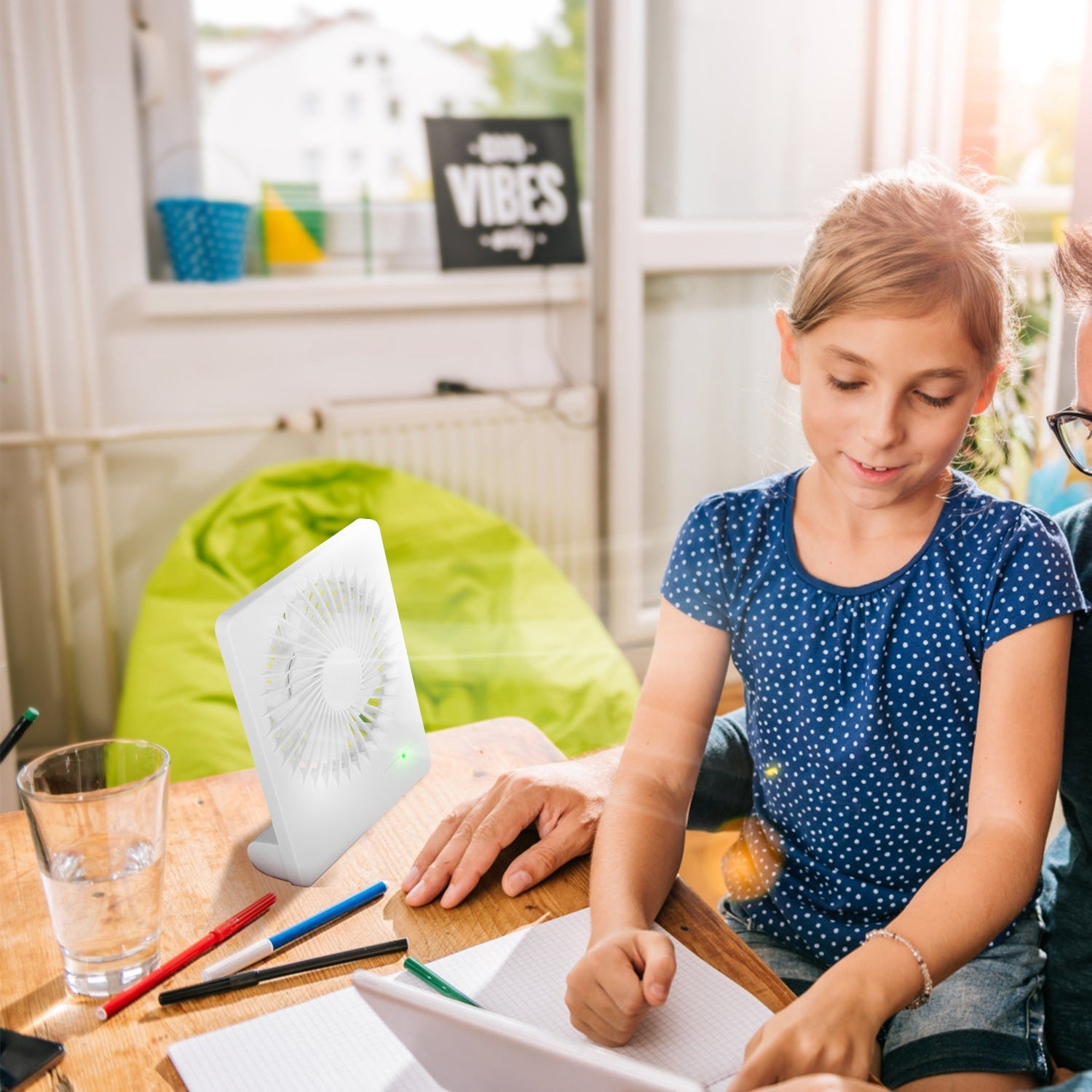 - *Stable Desk Fan*: Come with widened bottom base and symmetrical structure,the fan stands on the desk surface and brings you coolness when you are reading,working or playing games.
