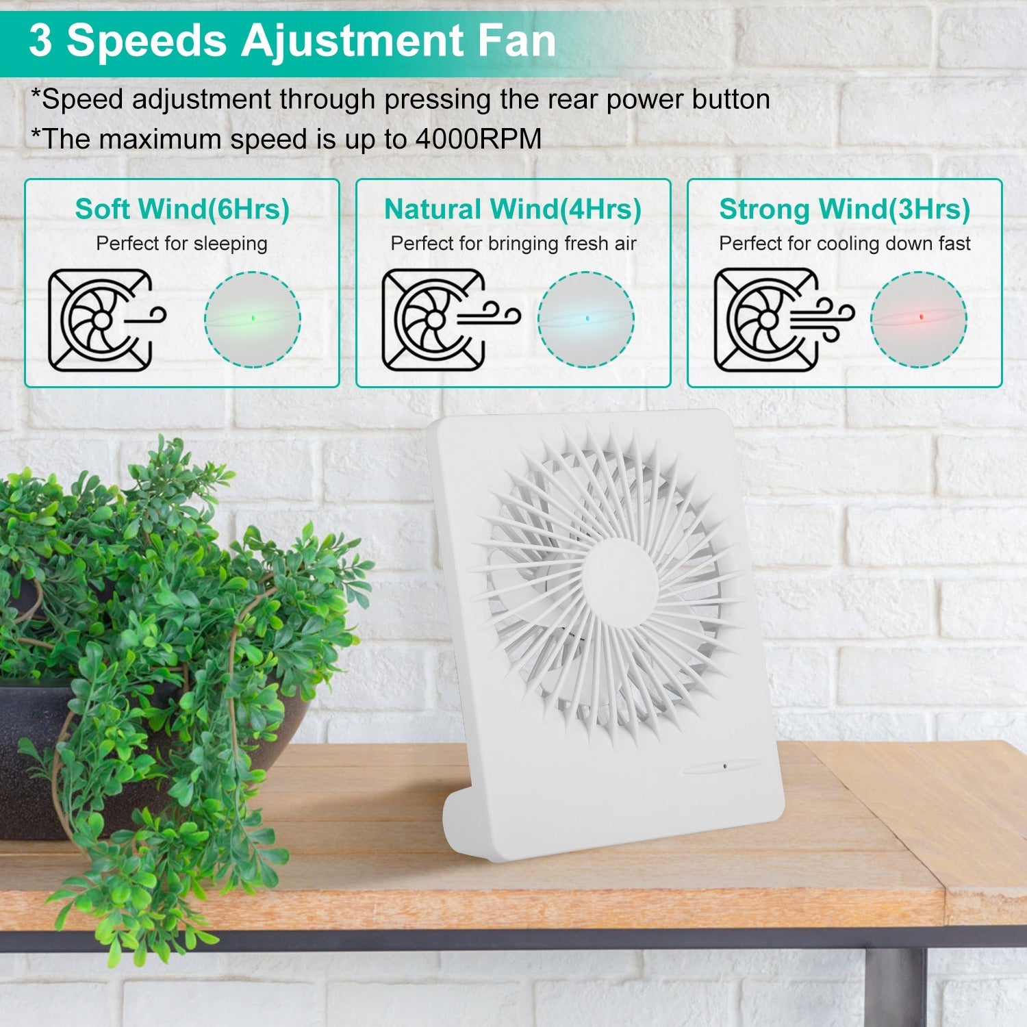 - *Rechargeable Fan*: Our desk fan can be 1-2Hrs fully charged and last for 6Hrs. 3 Speed adjustment meet your different demands. One button disperses heat.