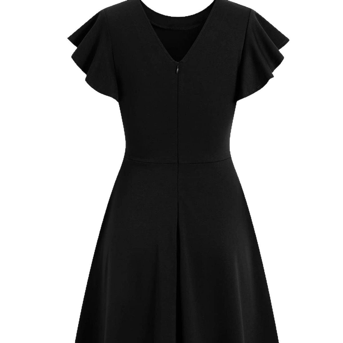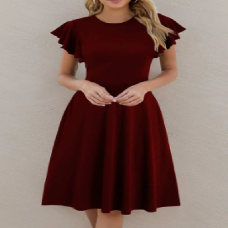 Short Sleeve Round Neck Elegant Ruffle Sleeve Solid Color Casual Mid-length Dress