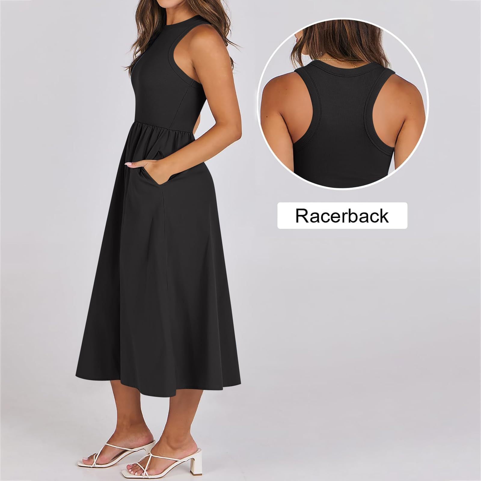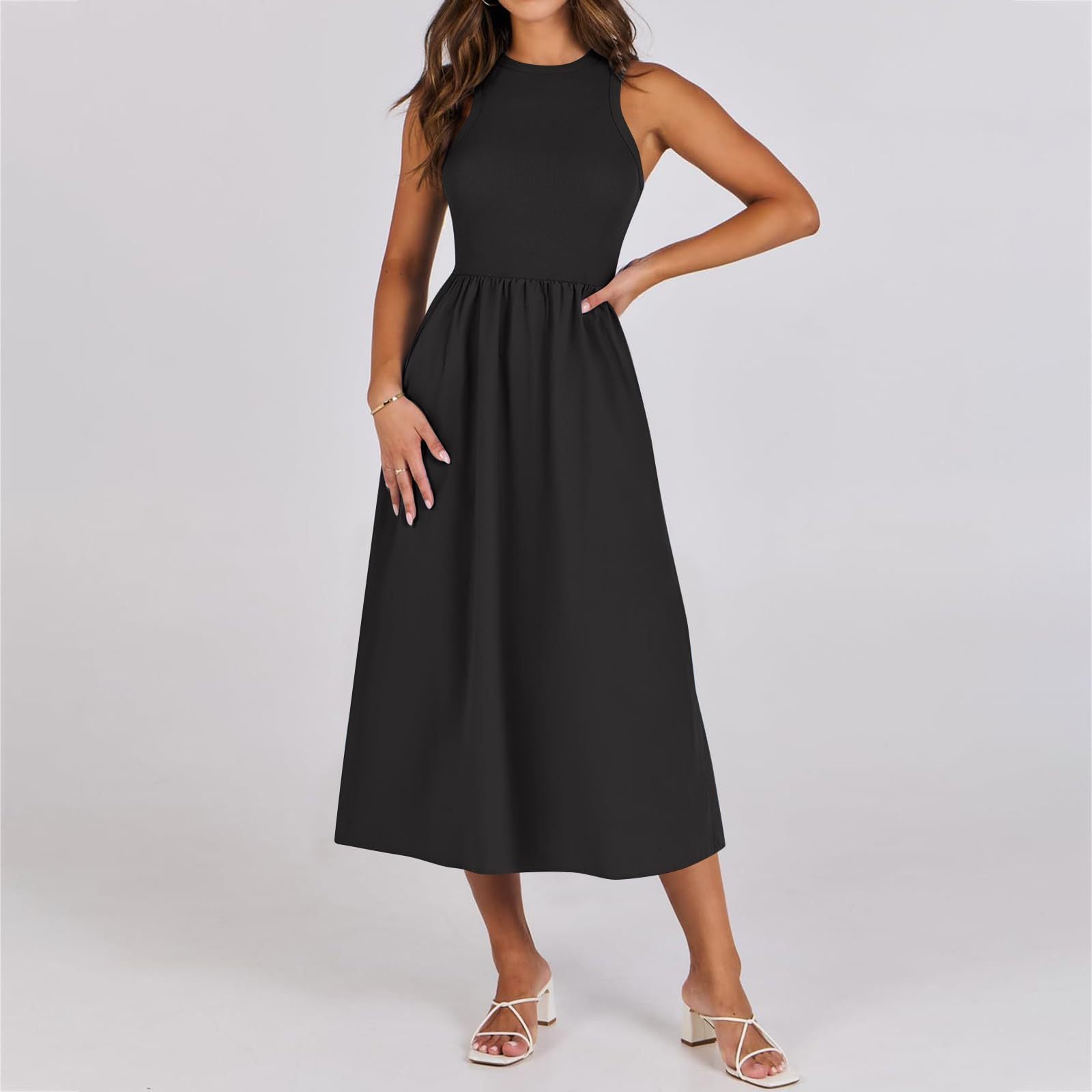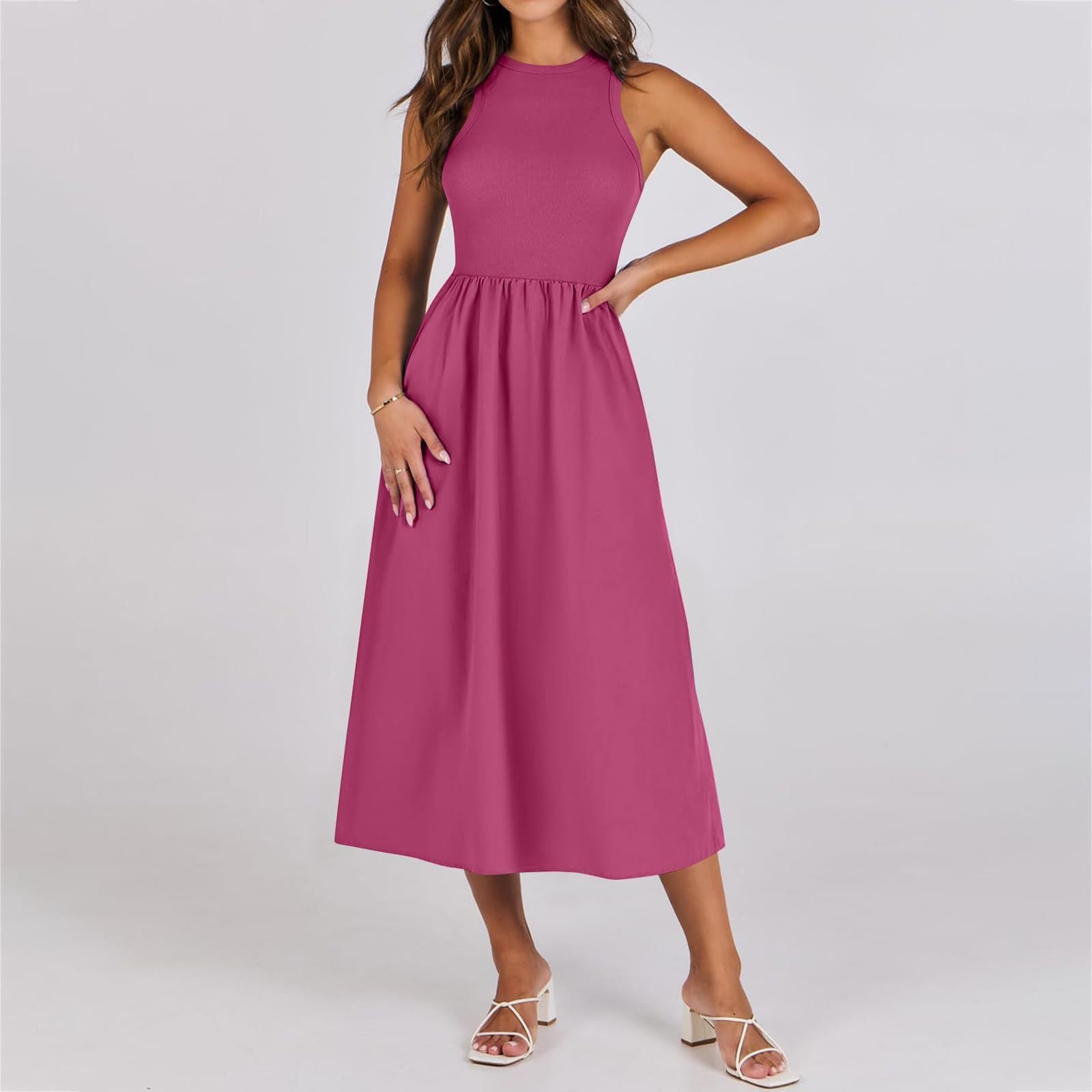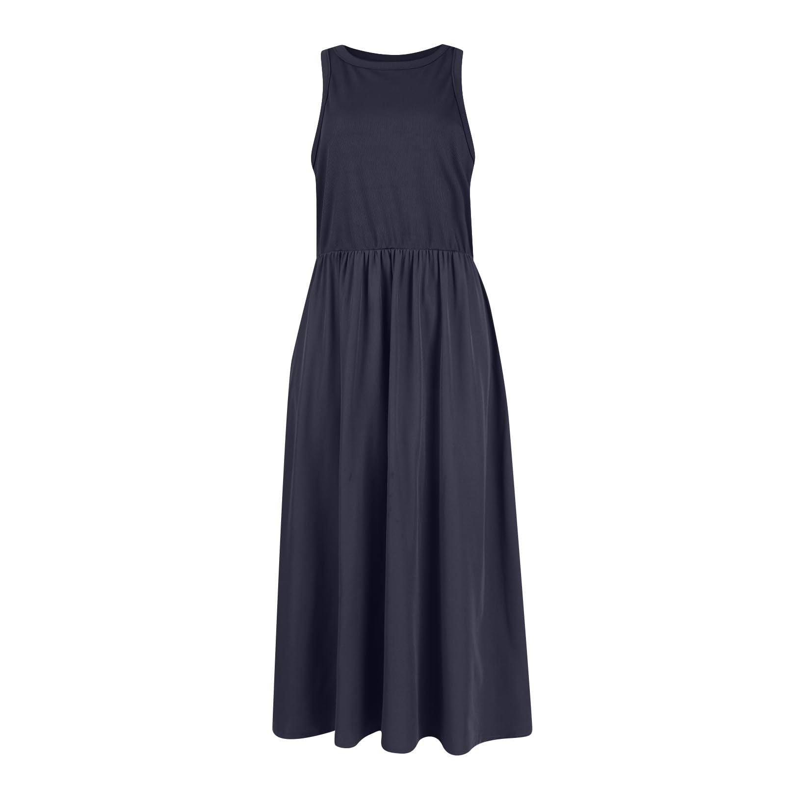 Sleeveless Knitted Stitching Casual Long With Pockets Advanced Sense Dress