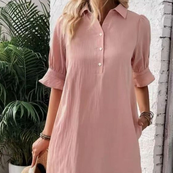 Spring And Autumn Women's Clothing New Casual Loose Solid Color Dress