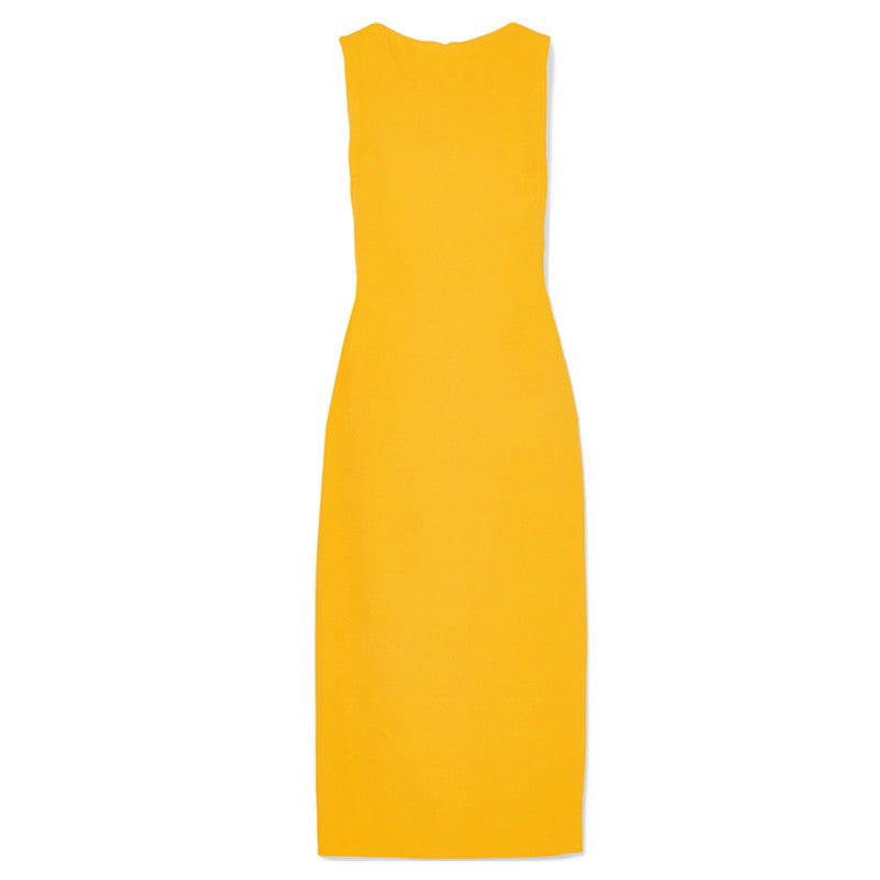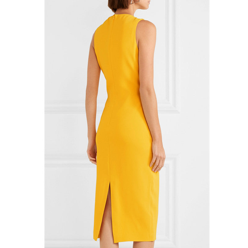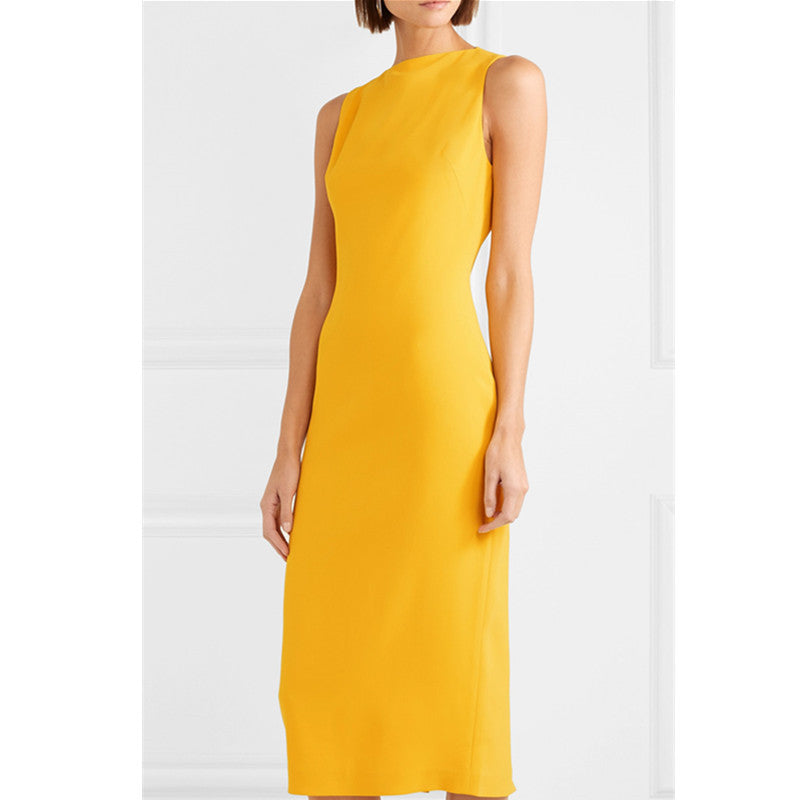 Spring And Summer New Style Back Slit Bag Hip Skirt Pencil Skirt Yellow Dress