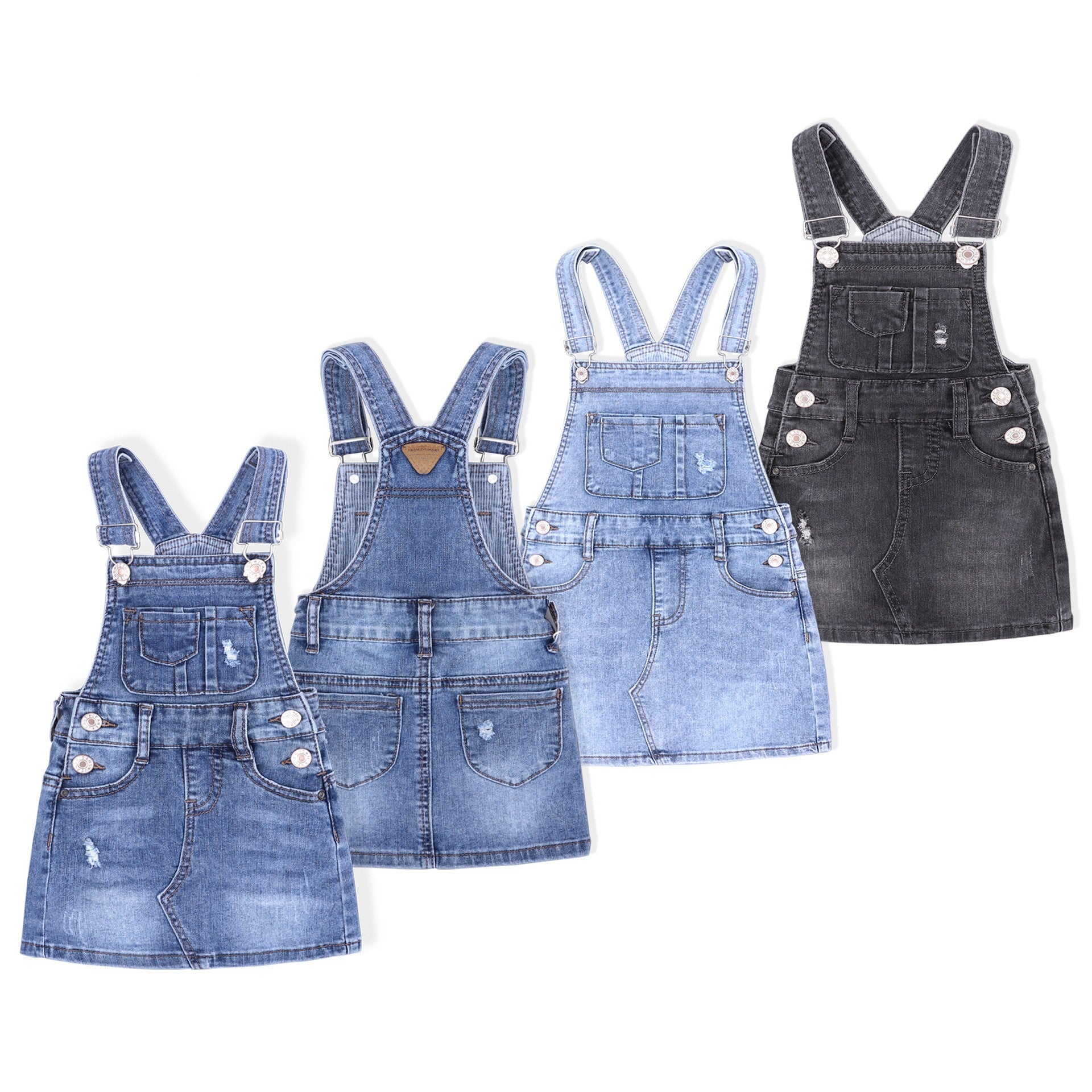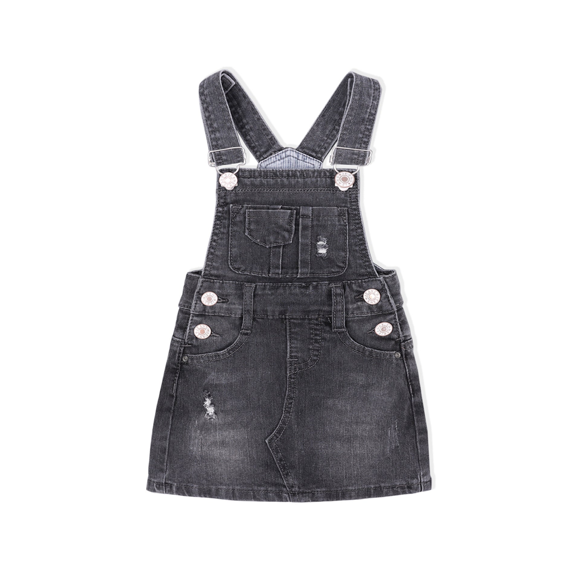Stretch Ripped Denim Slip Dress For Baby Girls
