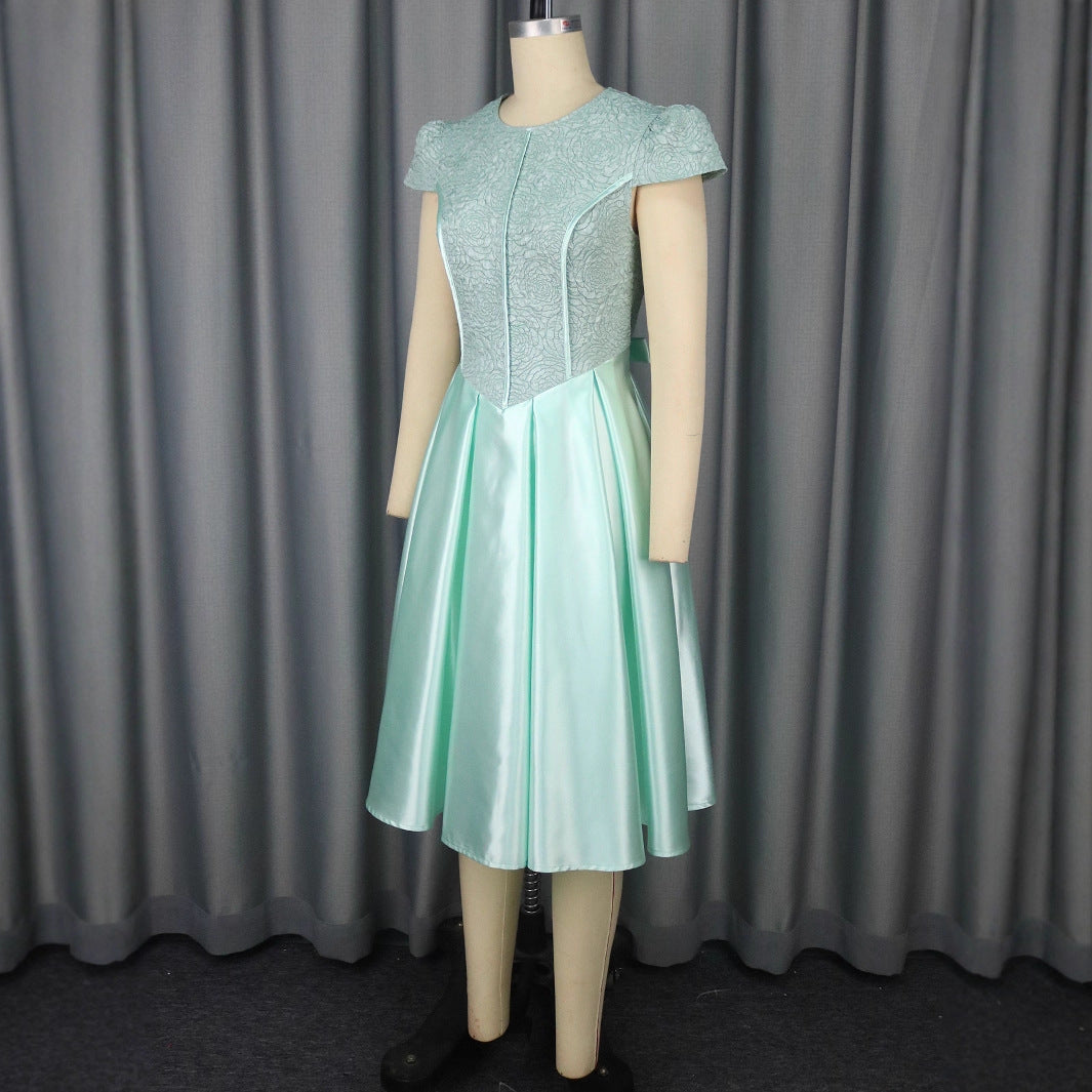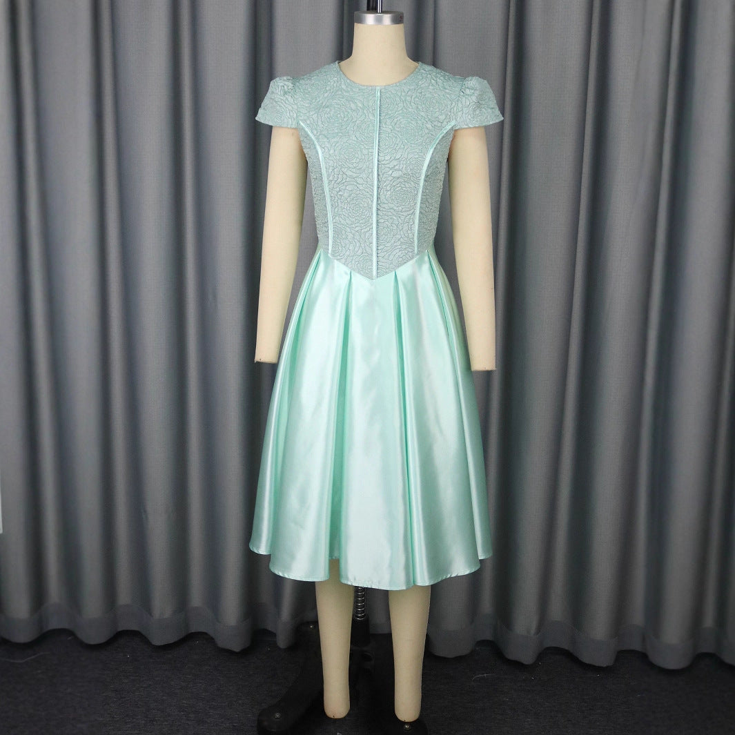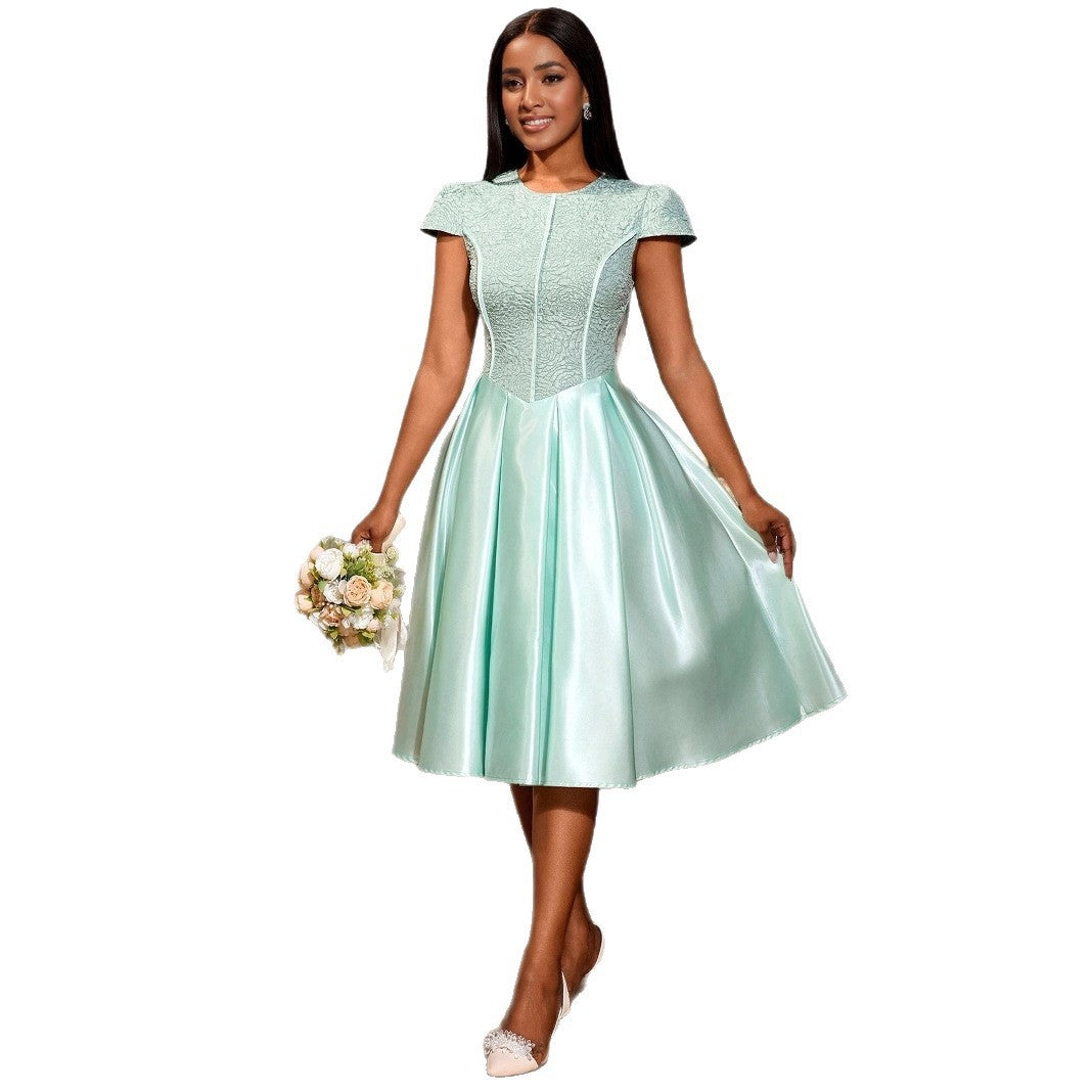Summer Round Neck Rose Jacquard Bridesmaid Dress