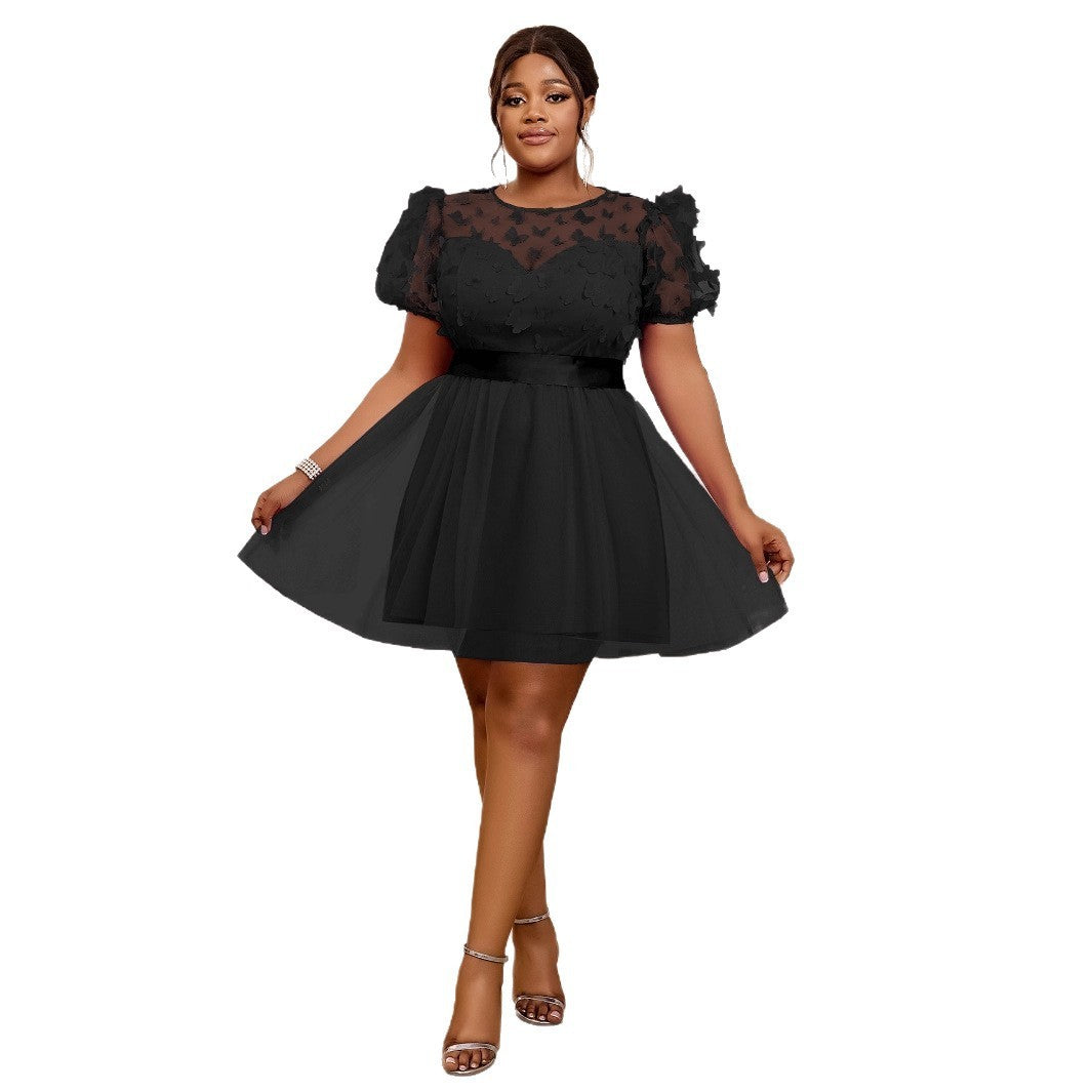 Three-dimensional Butterfly Gauzy Gown Short Sleeve Cute Lady Dress
