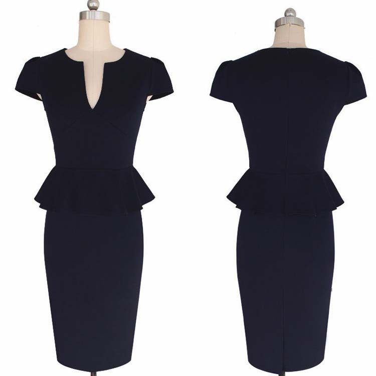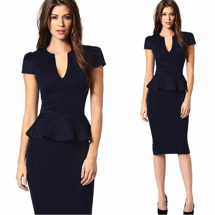 V-neck Waist Slimming Ruffled Back Slit Midi Skirt Celebrity Temperament Dress