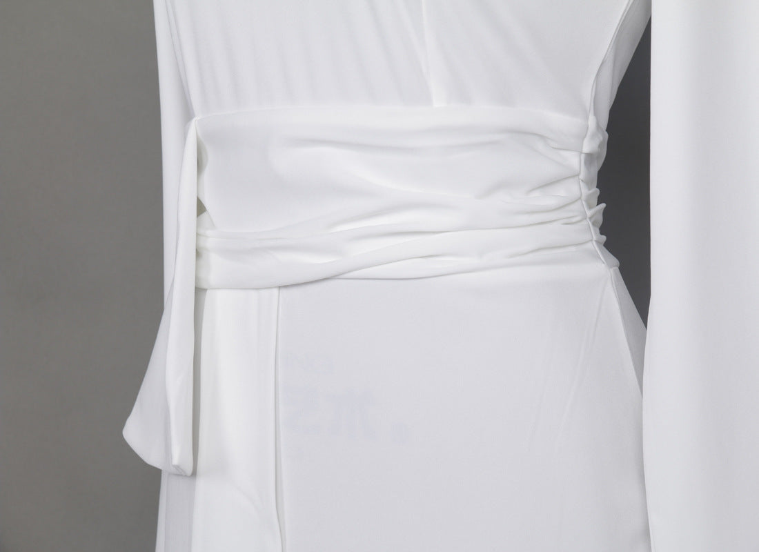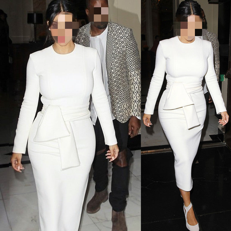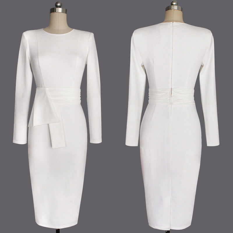 White Long Sleeve Slim Fit Pencil Skirt Women