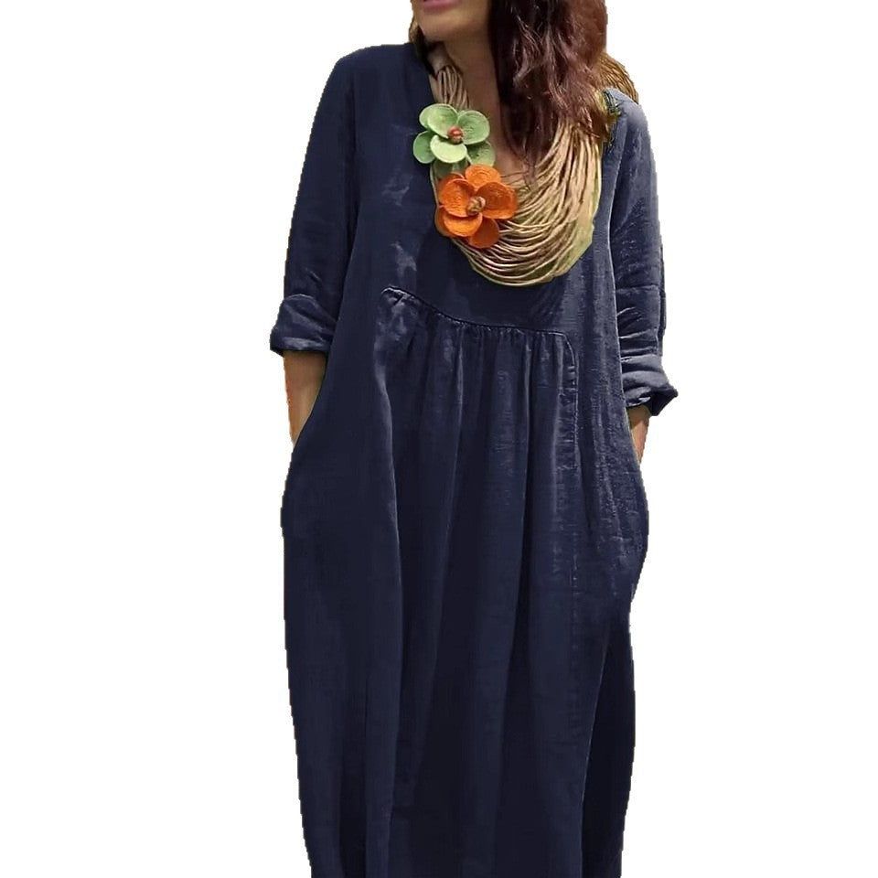 Women's Casual Solid Color Cotton And Linen Pocket Dress