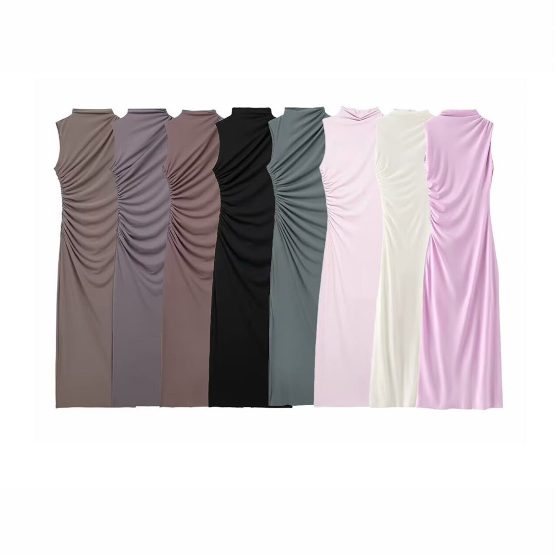 Women's Fashion Slim Pleated Decoration Midi Skirt Dress