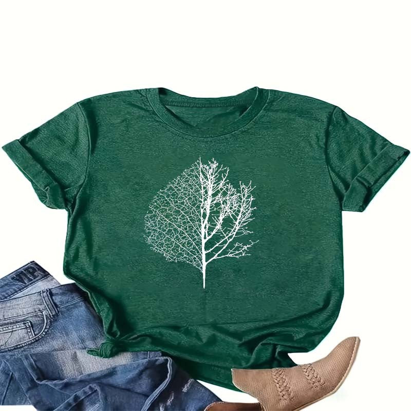 Women's Leaf Vein Print T-Shirt – Nature-Inspired Summer Essential