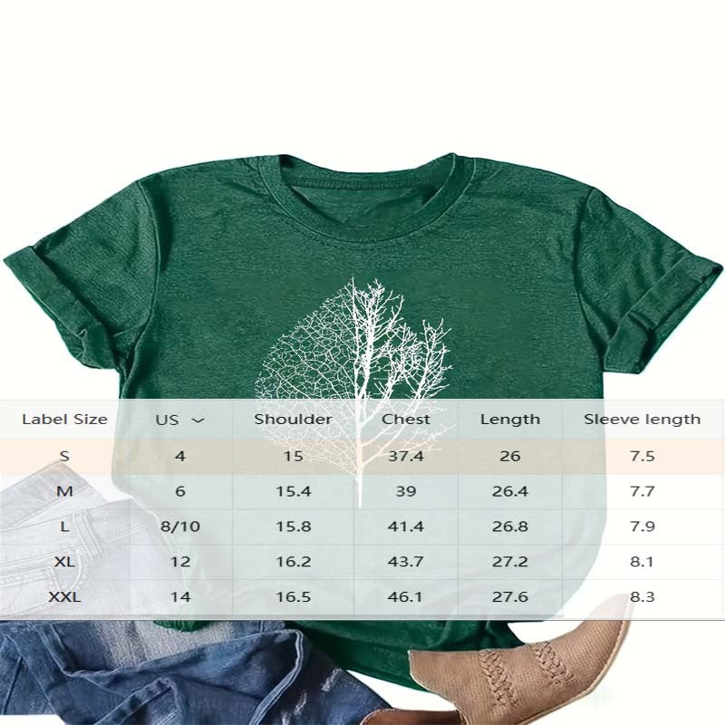 Women's Leaf Vein Print T-Shirt Nature Style Casual Short Sleeve Crew Neck Summer Top